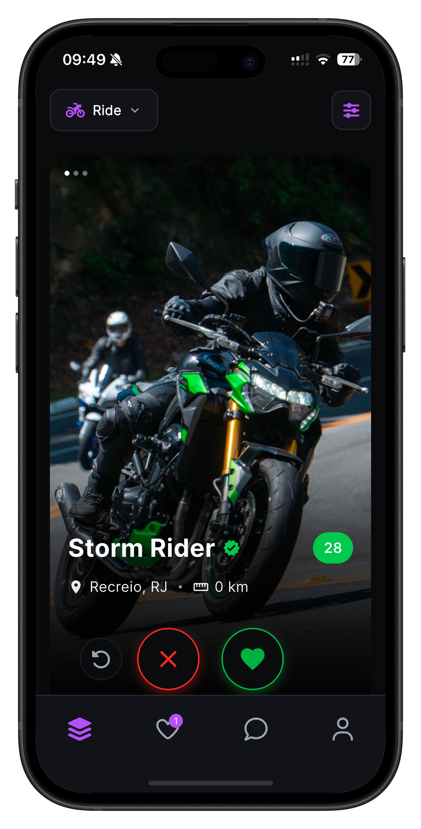 Aplicativo para motociclistas: encontre companhia para o próximo rolê, grupos de moto e matches com quem divide a mesma paixão por duas rodas. Rolês de moto no Brasil nunca foram tão fáceis.